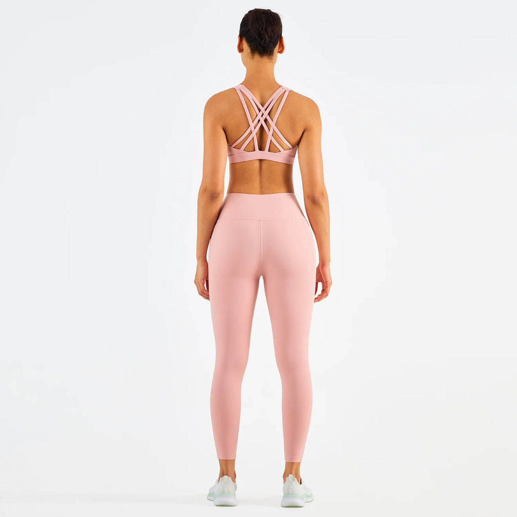 Oem No T Line Women Yoga Set Multiple Straps Gym Bra High Waist Sport Pants For Girls |