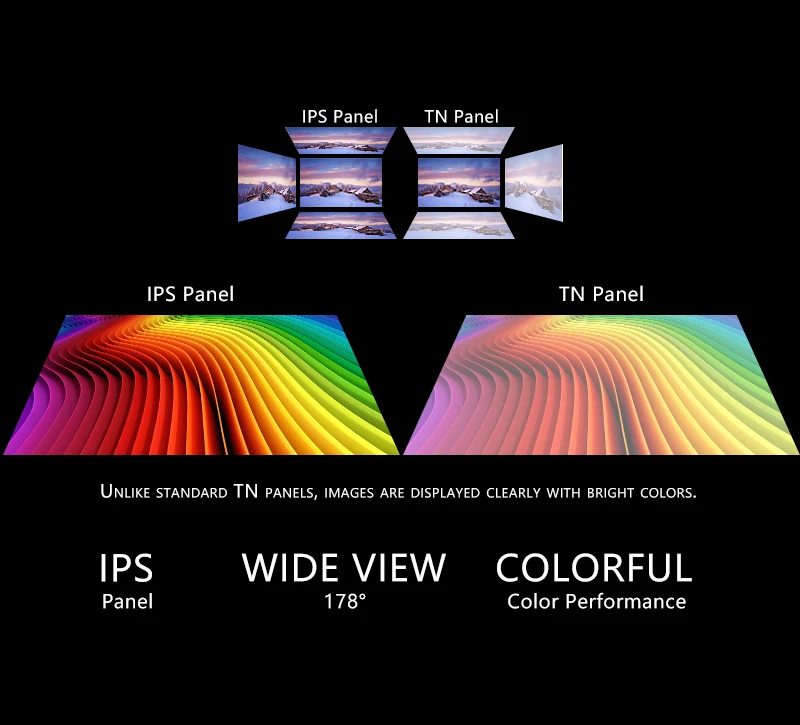 Due to the IPS-based panel, the color and contrast changes are not easy to occur from all angles, and the image is clearly
