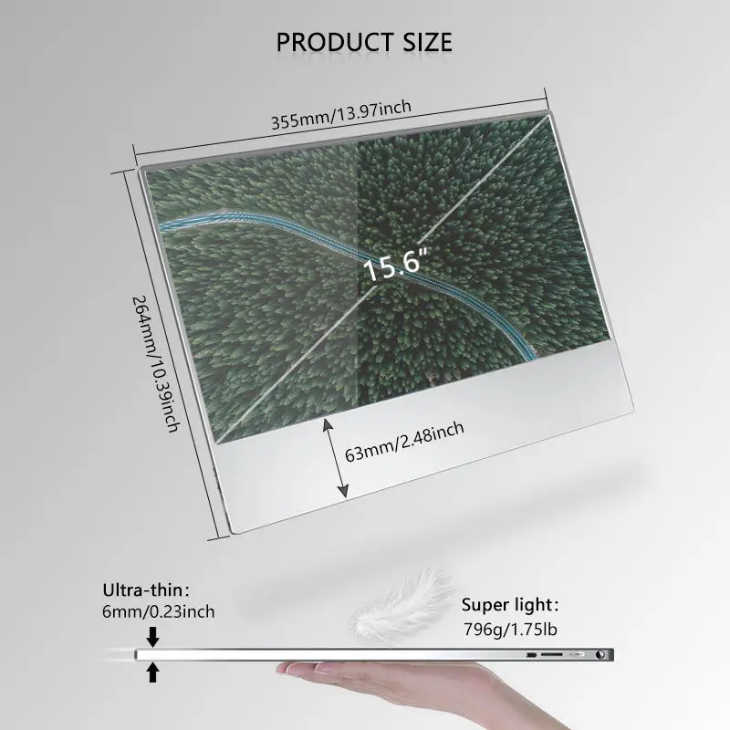 SIBOLAN 5mm Ultra-Narrow Bezel Ultra-Thin Slim Unibody design 15.6 inch 16 inch 1080p Touch screen mini HD Portable Monitor support factory OEM ODM