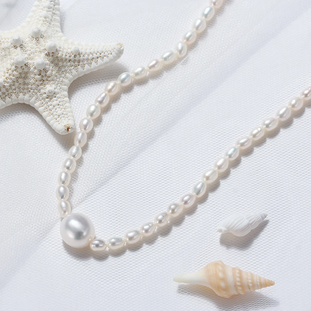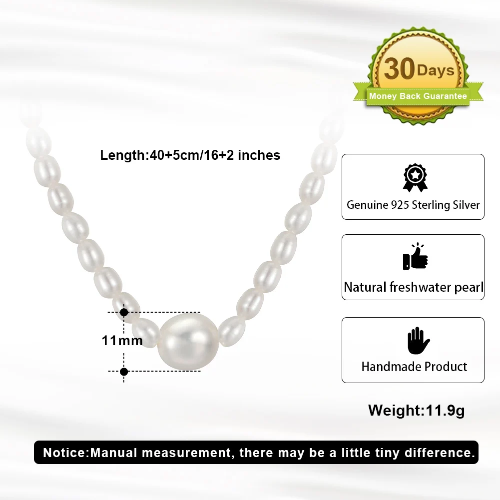 GPN34 Rinnrin Sterling Silver 925 Round White Cultured Freshwater Pearl Necklace Jewelry for Women